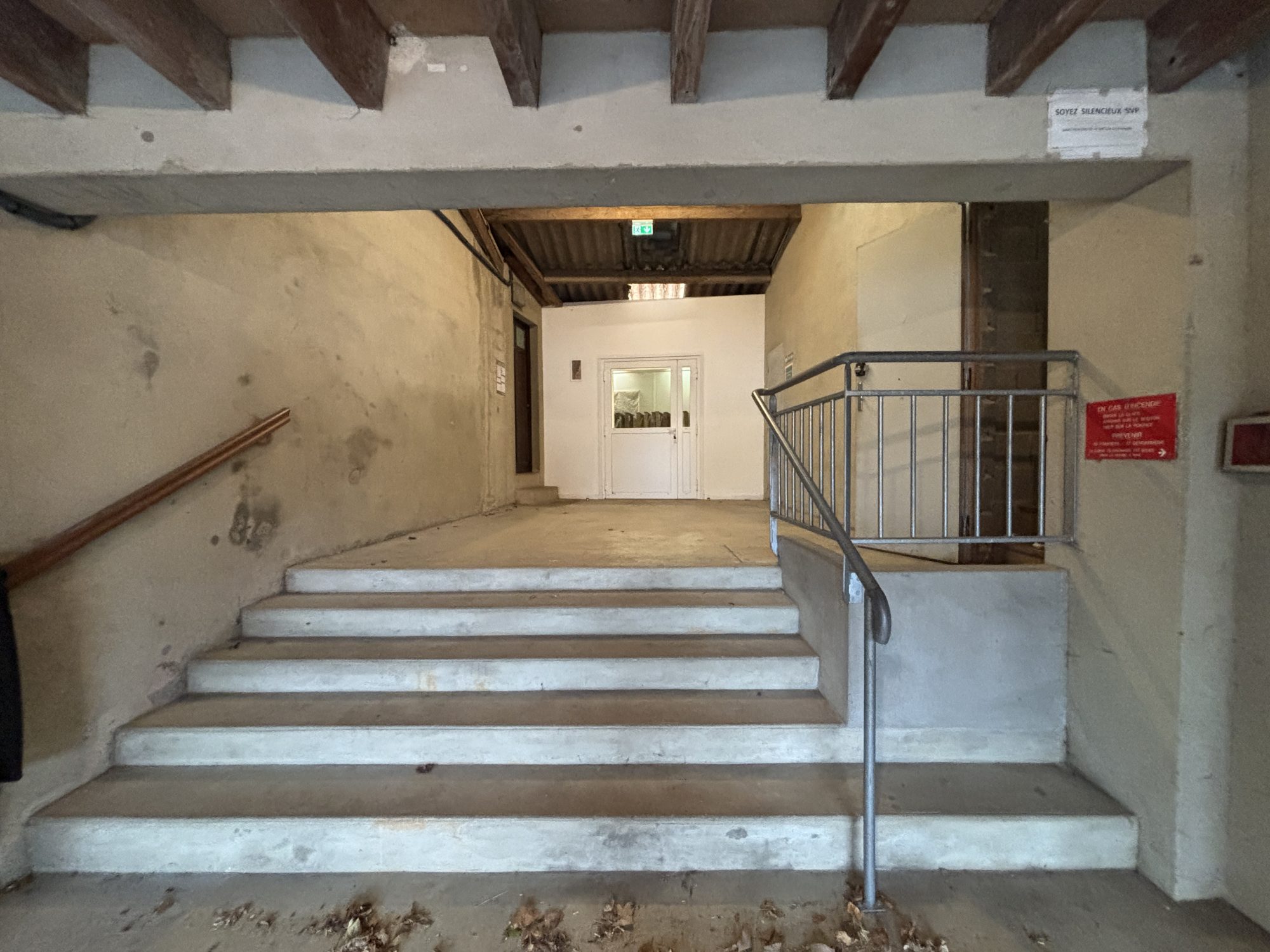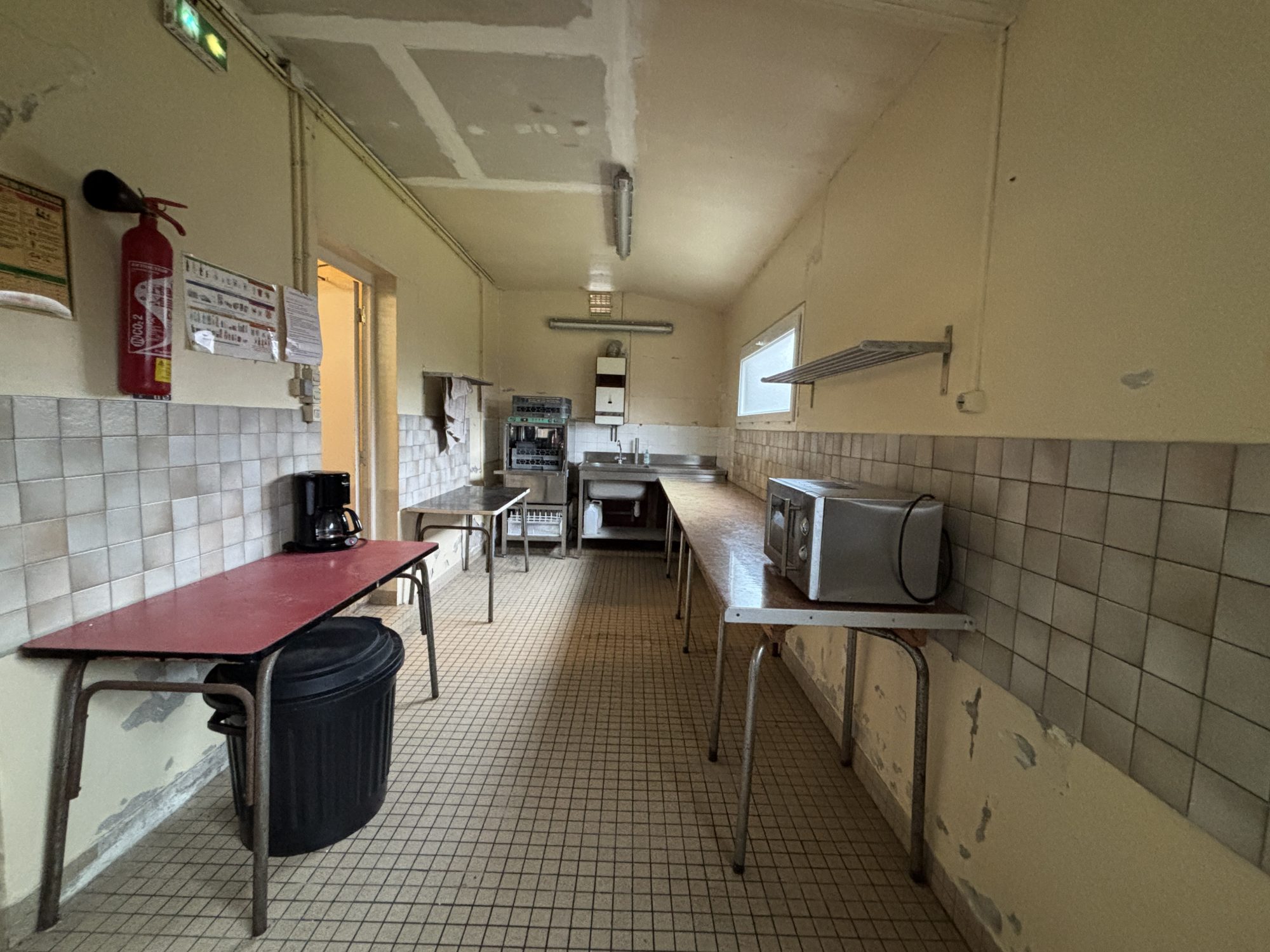 - Rez-de-Chaussée : hall d’entrée, grande salle, scène, arrière scène, cuisine, bar, sanitaires, arrière-salle, différentes pièces technique.