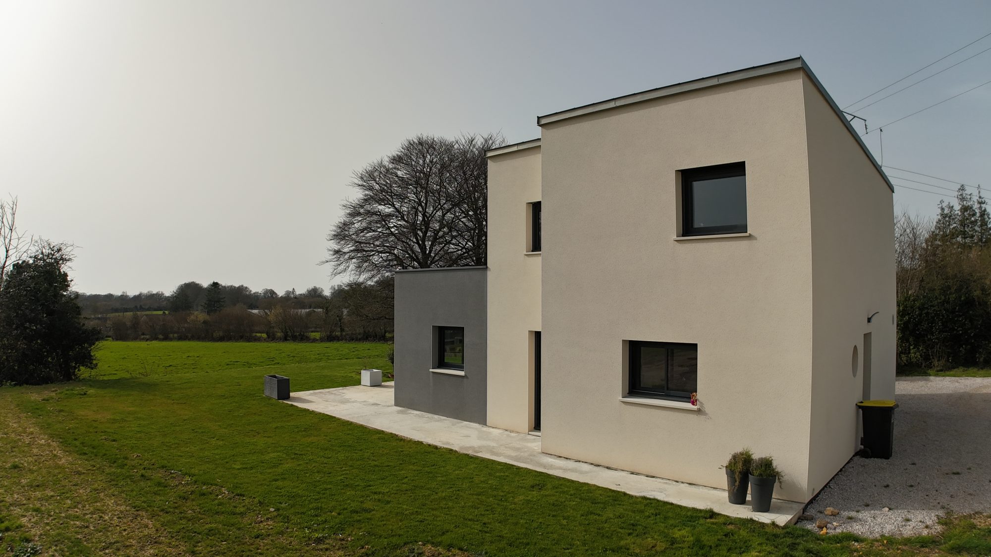 Sur un terrain de 1086 m², maison comprenant : - Au rez-de-chaussée : Cuisine, salon/séjour avec poêle à granulés, dégagement + placards, WC avec lave-mains, chambre et salle d'eau. - A l'étage : Palier, salle de bains avec WC, deux chambres et terrasse. Garage, terrasse et jardin autour. Huisseries Aluminium et chauffage électrique. Assainissement individuel conforme.