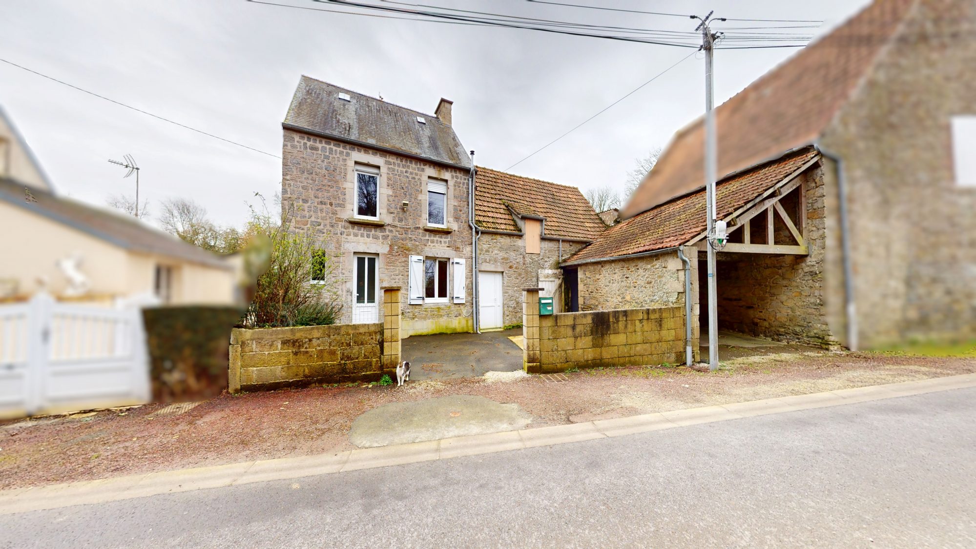 Sur un terrain total de 730 m², maison de 76,79 m² habitables, comprenant : - au rez-de-chaussée : entrée, séjour avec cheminée, cuisine, salle d'eau, WC ; - au 1er étage : deux chambres ; - au 2ème étage : une chambre. Huisseries PVC. Chauffage central fuel. Assainissement individuel aux normes. Cour arrière avec hangar, celliers, chaufferie (108 m² total). Cour devant avec garage de 30 m². Jardin en face de la maison
