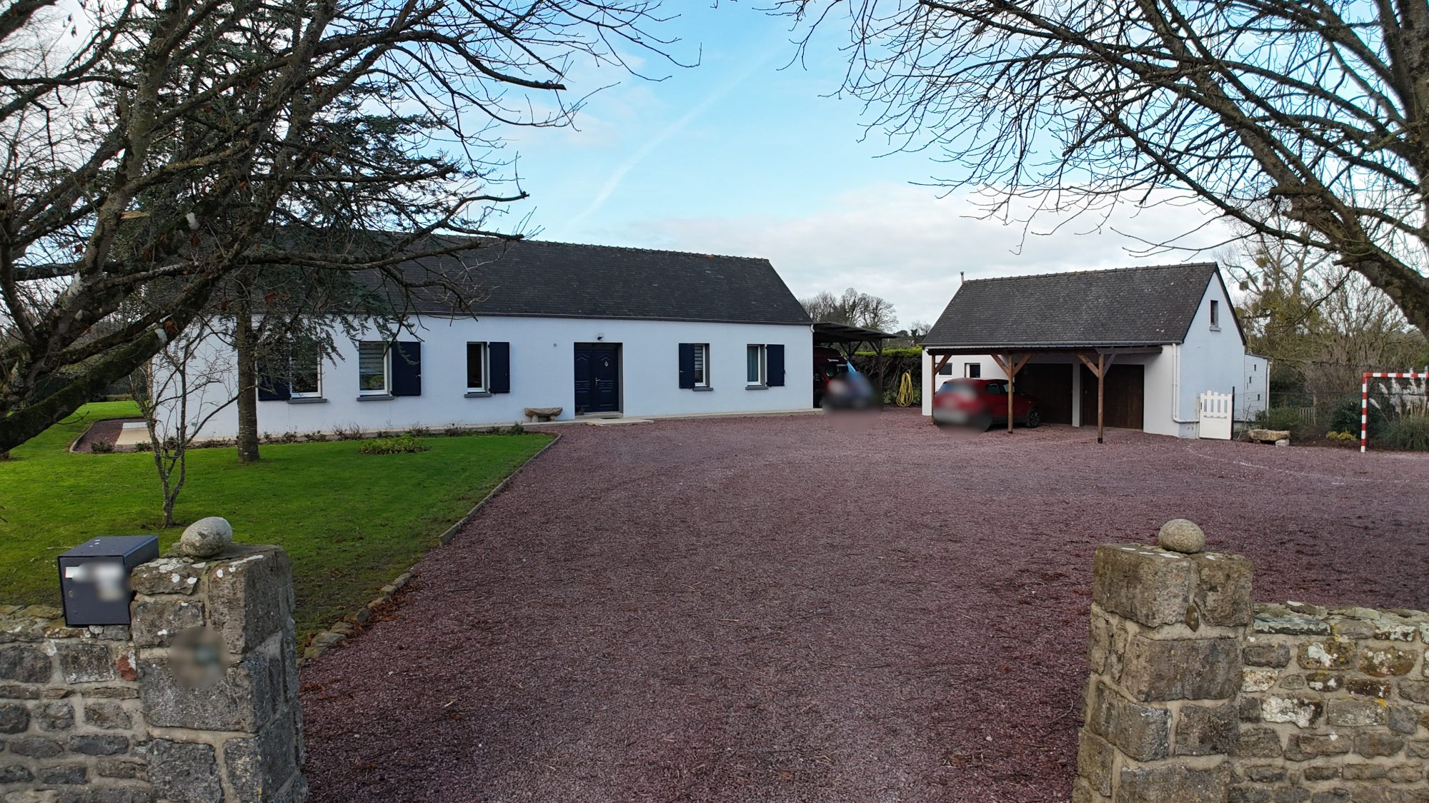 Sur un terrain de 2546 m², maison comprenant : - au rez-de-chaussée : entrée, séjour avec poêle à bois et à granulés, cuisine ouverte, chambre avec salle de bains, dégagement et WC ; - à l'étage : palier, deux chambres mansardées, salle de bains et WC. Bâtiment avec buanderie et garage avec grenier au-dessus. Deux carports et jardin autour. Huisseries PVC et aluminium, chauffage électrique. Assainissement individuel conforme.